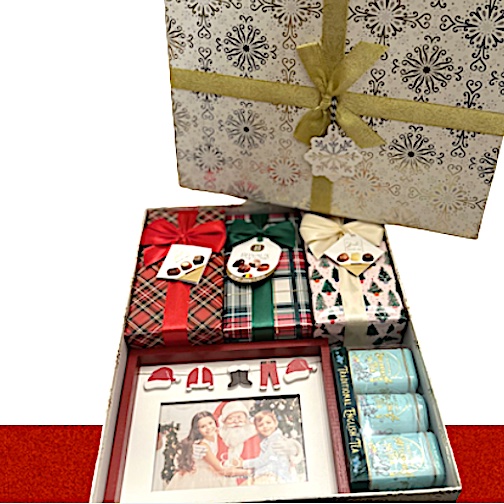 This is the 'best of the best' you can send this holiday season! From English Breakfast Teas in cute little tins, to a Frame for your Holiday Pictures, to 3 Holiday wrapped Assorted Boxes of Belgium Chocolates! That picture frame goes with the ornaments and returns year after year to their mantle!